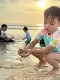 Their beach is PERFECT. The beach is clean, and not crowded. You will want to spend most of your time enjoying the sunset while your kids can enjoy their time in the pool or playing sand.