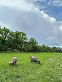 The whole area is clean and well kept. The paddy fields were in full bloom with the seedlings growing strong and sturdy. There are even cows and bullls grazing in the fields making this compound look like an authentic kampung environment. ❤️