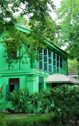 The trees are tall and lush, and the scenery is quiet and pleasant.
