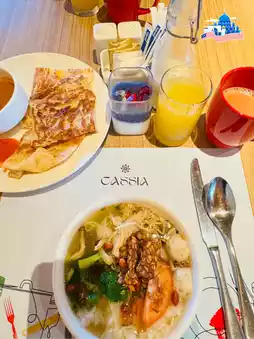 Enjoy a hearty breakfast buffet together with me at Cassia, located at Parkroyal Langkawi Resort. You can choose your room rate with or without breakfast and if you wish to have breakfast and their ala-cart price is 110 rm for adults and 55 rm for kids (6 to 12 years old). Their breakfast hours is from 6am to 10.30am and you can come earlier before 9am for a less crowded experience. All-you-can-eat breakfast is always good option and you can cook your own noodles, order made-to-order eggs and roti canai too. In the morning is not so hot so you can always sit at their outdoor area facing the pool.