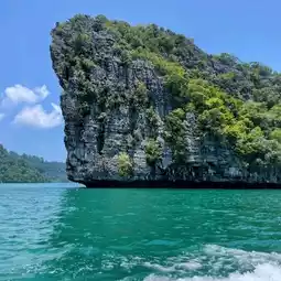 In this tour we had visited many islands of the Langkawi archipelago. With some rest points to take picture and swim if we wanted to. We saw spectacular rock formations and island structures, and even saw the symbol of Langkawi; Red-backed Sea Eagle, and the eagles come into feed! Moreover, because the tide was low, we got to cruise through a small cave with incredible stalactites. This island hopping tour was such a thrilling & adventurous experience!