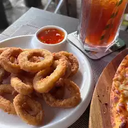 We ordered the 40cm pizza, which was delicious and more than enough for two people. The fried calamari was also excellent, perfectly cooked and seasoned. The combination of the food, the view, and the overall ambiance made for an unforgettable dining experience. If you're in the area, this is definitely a must-visit spot!