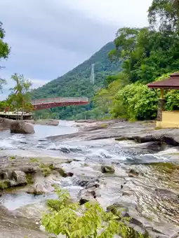 Visiting Telaga Tujuh in Langkawi was an unforgettable experience. Known as the “Seven Wells Waterfall,” it features seven natural pools formed by cascading waters. The trek up was challenging but rewarding, offering breathtaking views of the lush rainforest. The cool, clear water was perfect for a refreshing dip. Just 20 minutes away, a hidden blue lagoon awaits, offering a secluded and magical spot to relax in crystal-clear waters.