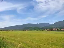 Kota Mahsuri is about a 30-minute drive from Chenang, whether by motorcycle or car. Visitors need to pay RM 20 for entry. There are several eateries, souvenir shops, and clothing rental stores for taking photos. Mahsuri's Tomb is open from 9:00 AM to 5:00 PM. Behind the tomb lies a vast expanse of beautiful green paddy fields with stunning views of mountains and blue skies.