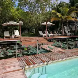 Kunang Kunang is absolutely magical. It's like stepping into a fairytale — traditional Malay wooden villas built over a lily pond, surrounded by greenery. Our villa had antique furnishings, a romantic canopy bed, and a beautiful open-air bathroom. It felt peaceful and soulful, especially at night when the fireflies came out. Breakfast was served by the water and included local favorites. Ideal for couples who appreciate authenticity, nature, and quiet charm over conventional modern luxury.