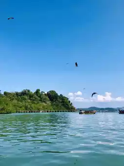 Singa Besar is located between Dayang Bunting and Beras Basah islands and can be visited with an island hopping tour. Singa Besar is famous for its rich wildlife, tourists can easily see there wild animals like monkeys and eagles. It was my first time to see so many eagles at the same time! We saw them on their lunch break flying over the water and catching fish.