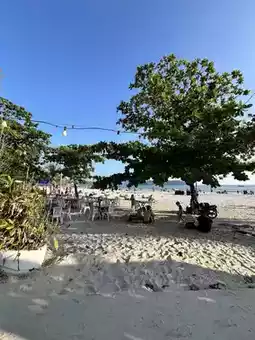 - Soft white sand and turquoise waters. Perfect for daytime strolls and splashing around.