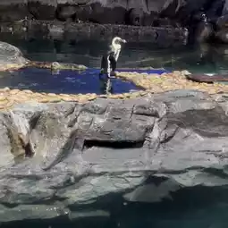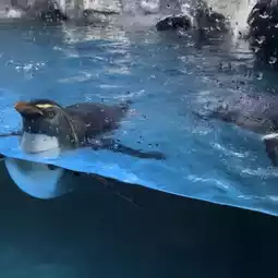 This aquarium displays wonderful marine wildlife and land creatures . At the Penguinarium , there is a group of penguins that are quite active swimming and moving together . They are sooooo cute !