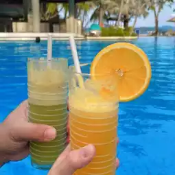 Views are magnifico! Blue beach and green mountain at the back. Such a great & serene place to calm our days.