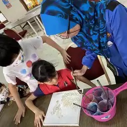 This is an interactive craft that is happening at Langkawi Craft Complex. There will be a guide to teach you, how to do the colouring correctly.