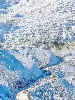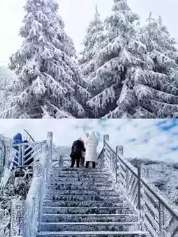 The mountain spans two provinces and is often shrouded in clouds. From late December to February, you can see rime, snow, and clouds. You can enjoy the snow and ice scenery on a day trip from Guangzhou or Shenzhen. This is Yunbingshan⛰️