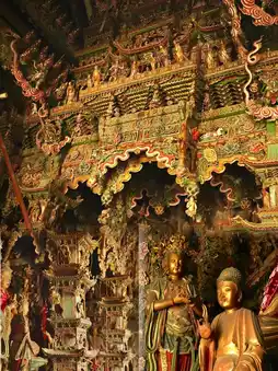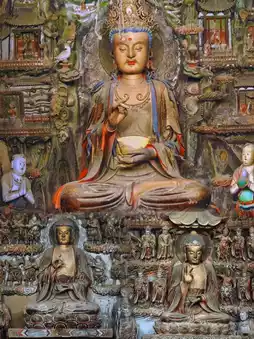 👀Highlights:😲 The painted clay sculptures in the Zhusheng Shuilu Hall of Shuilu'an Temple are the essence of the essence😍. There are over 3,700 Buddha statues of varying sizes👏, divided into four parts: the north and south mountain walls, the two walls of the central compartment in the hall, and the two eaves walls. The clay sculptures on the north and south walls depict the life story of Buddha Sakyamuni in the form of comic strips. It's truly amazing👍. The three main Buddha statues are also super impressive🧐. Sakyamuni Buddha, Medicine Buddha, and Amitabha Buddha, located in the central compartment, all sit on Sumeru pedestals and have magnificent backlights. The backlights also feature four Buddhas, eight Bodhisattvas, four Heavenly Kings, and eight Dharma protectors. It's so spectacular😎. The three Bodhisattva statues are also not to be missed😉. On the back of the central compartment are Guanyin, Manjusri Bodhisattva riding a green lion, and Samantabhadra Bodhisattva riding a white elephant. Guanyin sits high on a dragon platform, which is truly imposing👍. The twenty-four guardian deities at the bottom of the mountain walls are also super cool🤩. These deities have diverse expressions and majestic appearances, showcasing traditional sculpting techniques in their facial features and body shapes. It's truly captivating😫.