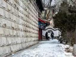 To the east of the palace, there is a small flower fence with a vase-shaped gate. On the plaque of this gate, three characters are written in light gray clerical script—“Guoyuequan” which stand out prominently. This spring is completely different from other springs. It is more akin to a well rather than a spring. The spring water gathers in a deep hole resembling a well, about 1.6 meters deep. Every month at night, the moonlight shines in the center of the spring water, creating an image as if holding the moon in one's hand, hence the elegant name “Guoyue,” meaning “National Moon.” This place is also where three mountain paths from the west, center, and east converge.