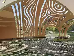 - Colored Pottery Spatial Corridor: Entrance landmark, an arc-shaped structure imitating colored pottery forms, decorated with ancient patterns;