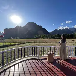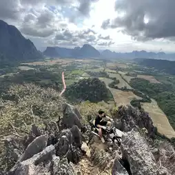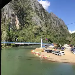 For those who love adventure and nature, don't miss climbing Pha Nam Sai Mountain, where you can see a panoramic view, along with a landmark like a motorbike on top of the mountain. Everyone must be willing to take a photo waving the Lao flag at least once in Vang Vieng.
