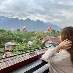Vang Vieng is known as the city of balloons. Just by staying at a hotel here, you will have the opportunity to see balloons from the window.
