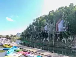 No longer wondering why it took 3 hours for a distance of only a hundred kilometers 🤣🤣.... And we arrived here. It is a Nordic-style house for 500 baht per night. But booking it is as difficult as the route we took.