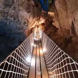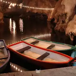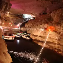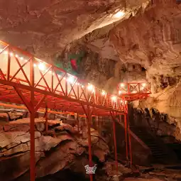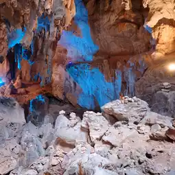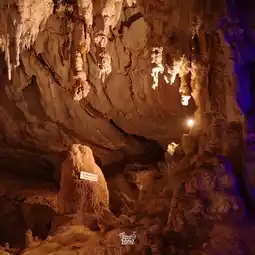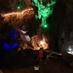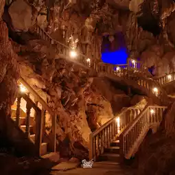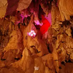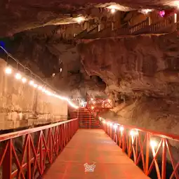 The cave is decorated with lights that shine on the stalactites and stalagmites, very beautiful.