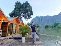 Travel to Muang Fuang, stay in Muang Fuang, raft houses in Muang Fuang. Enjoy the new popular check-in spot in Laos, 'Muang Fuang'. Stay in raft houses by the river, surrounded by beautiful green mountains and mist. Room rates are in the thousands, but the view is priceless. The atmosphere is great, enjoy a delicious barbecue. In the morning, monks come to receive alms right in front of your accommodation by boat.