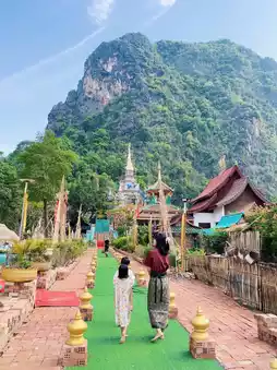 Entering the temple in Laos, you must dress politely. If women wear clothes shorter than the knee, the temple will provide cloth to wear to maintain politeness. The temple is very close to the Nam Tong Reservoir. But if you stay in the raft area, you may have to drive for about 30-40 minutes. The route is good and easy to drive. #People who like to travel #Wat Sin Chaiyaram #Muang Fueang #Visit Laos #Visit Muang Fueang
