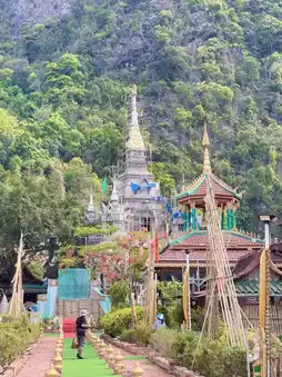 The temple is still under construction. There is a lot inside the temple. When we went to see it on Go Went Go, we saw that it was under construction last year. We thought that if we went this year, it should be finished. But it is still under construction. There are churches, pavilions, walkways, temple arches, and various sculptures. Everything is being done at the same time. So the work should be finished a bit slower.