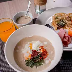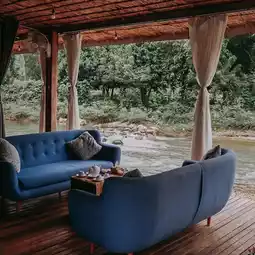 There are many types of rooms to choose from. There are both camping styles by the water or rooms next to the rice fields with amazing mountain views. Comes with a bathtub with a view. Let me tell you that there are plenty of photo spots 📸