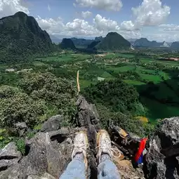 Vang Vieng - Must do activities when you come here: drive a buggy, ride a balloon, kayak on the Song River, jump into the Blue Lagoon, climb Pha Nam Sai, go tubing into a cave, play Zip Line, go to the Sakura Bar party, and other things. I only did a few of the things I wrote because my leg was injured🥴🤕