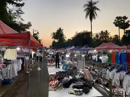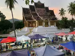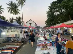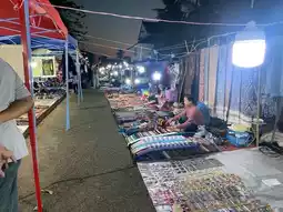 #Winter attractions Night market or Sticky Rice Street is the colorful nightlife of Luang Prabang. Si Savang Vong Road is transformed into a local market where Luang Prabang locals and the Hmong ethnic group bring their handicrafts to sell. There are many different kinds of products to choose from, such as silverware, local fabrics, and souvenirs from Luang Prabang. It is a bustling commercial market in Luang Prabang, so much so that there is a saying that “If Bangkok has Khao San Road, Luang Prabang also has Sticky Rice Street.” The Night Market is a night market that takes place in Luang Prabang from 5:00 PM onwards until 11:00 PM. The government has designated this time of year as a walking street. All types of vehicles are prohibited from entering or exiting or passing through. Hundreds of stalls with alternating blue and red umbrellas are set up. These colors are the colors of the Lao national flag. Normally, there are up to three hundred stalls selling various types of products, from food and drinks to clothes and souvenirs.