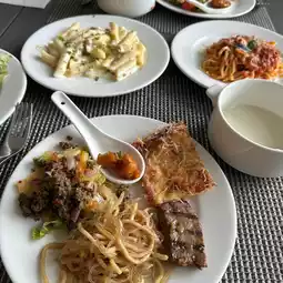 The restaurant buffet was clean inside and all the food was delicious 😋, and one drink was included for free.