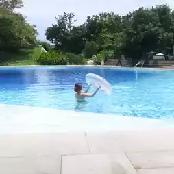 There is a shallow pool for children and a small water slide! They also rented out swim rings and other items.