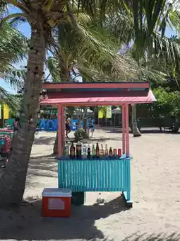 The island is surrounded by relatively shallow waters, and the white sand makes for a distinctively clear beach.
