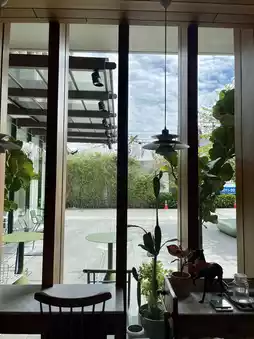 A very cool cafe in Lat Krabang area that uses a black theme throughout the shop.