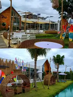 🔥Recommended: A beautiful cafe and restaurant in the Lat Krabang area, The Beach, Klaengrung. The cafe's interior is decorated with a sea-themed aloha vibes, like bringing the sea to Lat Krabang. The spacious space offers both indoor and outdoor areas, and plenty of photo spots.