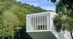 Hidden in the mountains and forests, surrounded by water on three sides, modern architecture is integrated into the natural landscape