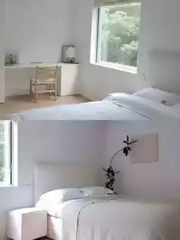 Next to the homestay is Liukeng Ancient Village, surrounded by mountains and water, with clear trees, occupying the best scenery, the terrain is a peninsula, the architectural shape of the homestay uses pure geometric spatial language, creating a striking order in the natural environment Homestay room