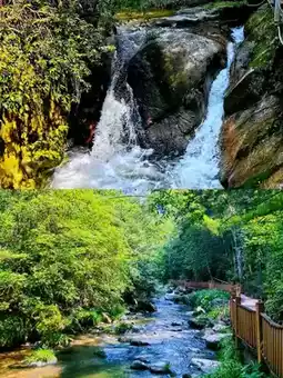 π After entering the scenic area, I was instantly amazed by the scenery. The blue sky and green mountains with waterfalls are so beautiful, as if I were in a painting π The air here is also very fresh, making me feel relaxed and happy ππ»