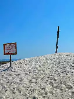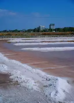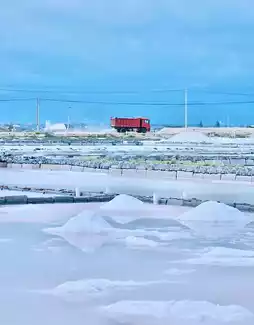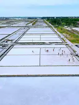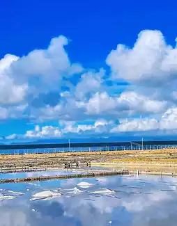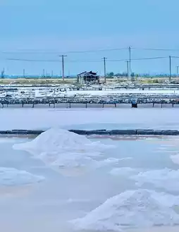 It once set a production record of 320,000 tons of salt per year. At high tide, seawater flows into the water storage lake from the tidal gate, and is transferred to layers of evaporation pools through pumping stations. The seawater concentration gradually increases to become brine, and then enters the crystallization area for saturated crystallization. The seawater has since been reborn and has a physical form.