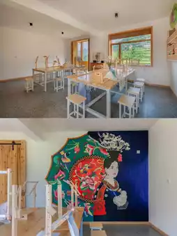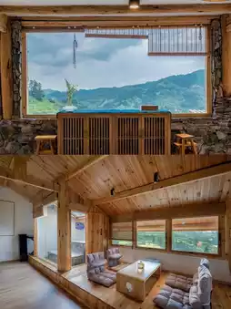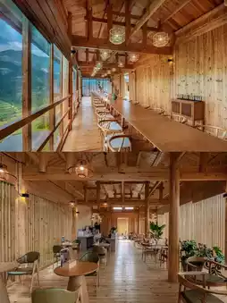 The first phase of the homestay has two buildings with 12 guest rooms, and the second phase has one building with 13 guest rooms, from which you can see the beautiful terraced fields 🖼 The homestay also has a restaurant 🍴 tea space 🍵 coffee shop ☕️ handicraft workshop ✂️ and a cultural and creative space, etc.