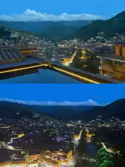 🏨【Hotel Address】: Luanxi Yun She Cultural Hotel is located 100 meters below the viewing platform of Xijiang Qianhu Miao Village, facing the Miao King Mountain Drum藏头 and backed by the viewing platform, offering an immersive experience with a panoramic view of thousands of lights.