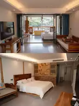 🛏【Room Types/Facilities】: The hotel offers a variety of room types to meet different customer needs, such as family rooms, suites, romantic round bed rooms, and leisure standard rooms. All rooms feature independent balconies with scenic views and are equipped with smart systems, including electric curtains, voice-controlled devices, smart toilets, high-end bathroom amenities, premium latex bedding, foldable double-layer soundproof glass doors, Dyson hair dryers, and more.