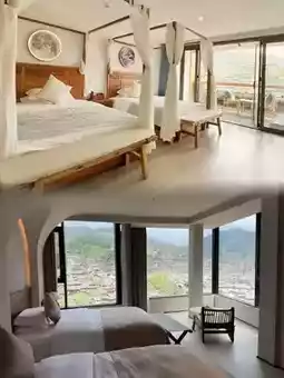 • 270° panoramic floor-to-ceiling windows, so you can lie down and watch the misty terraced fields in the morning and starry night views