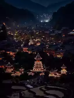 To enjoy the panoramic view of Miao Village, you can follow me and choose the inn located halfway up the mountain with floor-to-ceiling windows. In the evening, go to Miao Village and after settling in your accommodation, sit next to the terrace and wait for nightfall to enjoy the panoramic view of Miao Village. As the sky darkens, the lights of thousands of houses light up one by one, outlining the outline of the entire Miao village. 🏡🌠🥰 Early risers will be surprised! 🏡 The nursery in the early morning is shrouded in thin mist. The morning light turns the wooden house into gold, and the smoke rises. I stood at the observation deck, overlooking this thousand-year-old Miao village, as if I went back in time and returned to the purest origin of life.