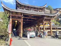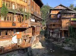 The village is built along the mountain, with the Baishui River running through it, creating a picturesque scene of green mountains as a backdrop and a jade-like ribbon at its feet. The village still preserves traditional wooden stilted houses, which are layered and orderly along the slopes. These houses are representative of traditional Miao architecture and have been listed as a national intangible cultural heritage.