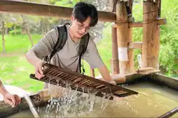 Here I personally experienced Cai Lun's ancient papermaking technique. Pour the bamboo pulp into the mold and watch it slowly solidify into paper, as if having a silent conversation💬 with Cai Lun in the Eastern Han Dynasty.