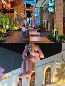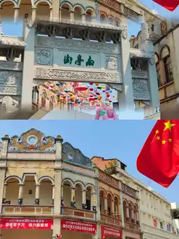 3: Qu Street Qu Street is very close to Sanyuan Tower. From the right side of the gate of Sanyuan Tower, you can walk straight to Qu Street. Qu Street is a Nanyang-style street. It's very beautiful and photogenic. The red flag decorations for National Day make it even more beautiful.