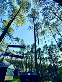 The cabins are compact but very well-designed – clean, comfortable beds, smart controls for lighting and blinds, and Bluetooth speakers for music. Each unit feels private, and waking up to tall pine trees right outside your window is refreshing. At night, the atmosphere is cozy, especially with the cool mountain air.