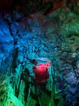 ✅ Crystal Curtain: Under blue-purple lighting, slender stalactites look like magical curtains, perfect for atmospheric photos✨