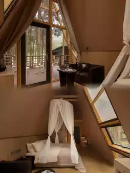 - Architectural Design: Comprising 17 secluded wooden cabins ποΈ in various shapes like triangles πΌ and squares β»οΈ, the rustic log-style design πͺ΅ blends seamlessly with nature. A 500-meter wooden boardwalk πΆ connects the cabins and common areas, creating a fairy-tale world π§βοΈ where every snapshot is picturesque πΈ!