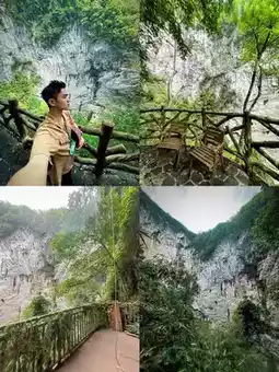 It creates a paradise of green mountains and clear waters, birds singing, and springs gurgling for travelers; through the crisscrossing architectural lines, it outlines a picturesque karst landscape 🥰.
