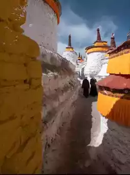 🌅 At dawn, a 100-meter thangka is stunningly unfolded